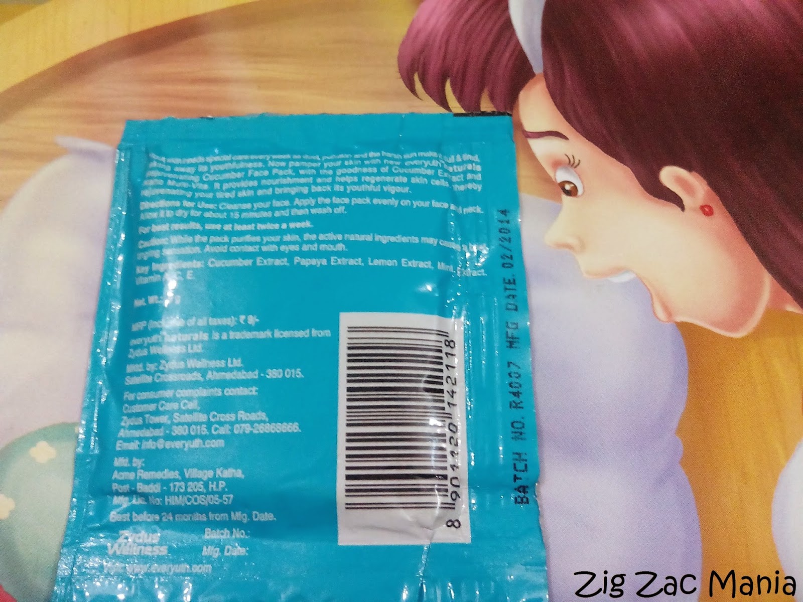 Packaging: This sachet is blue and white in color. You can also see the picture of cucumbers in the front. There is one thing which surprised me about it’s packaging is the list of ingredients printed on the back of sachet because usually it not given in case of small packages.